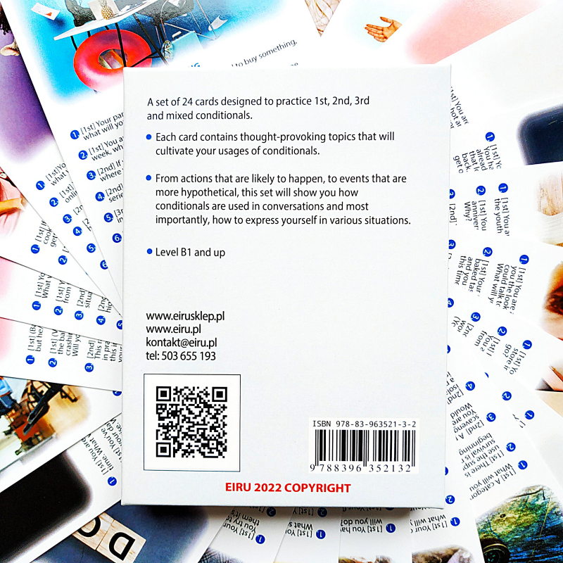 - Na każdej karcie 6 pytań/sytuacji, które wymagają użycia okresów warunkowych (I,II,III i mieszany)